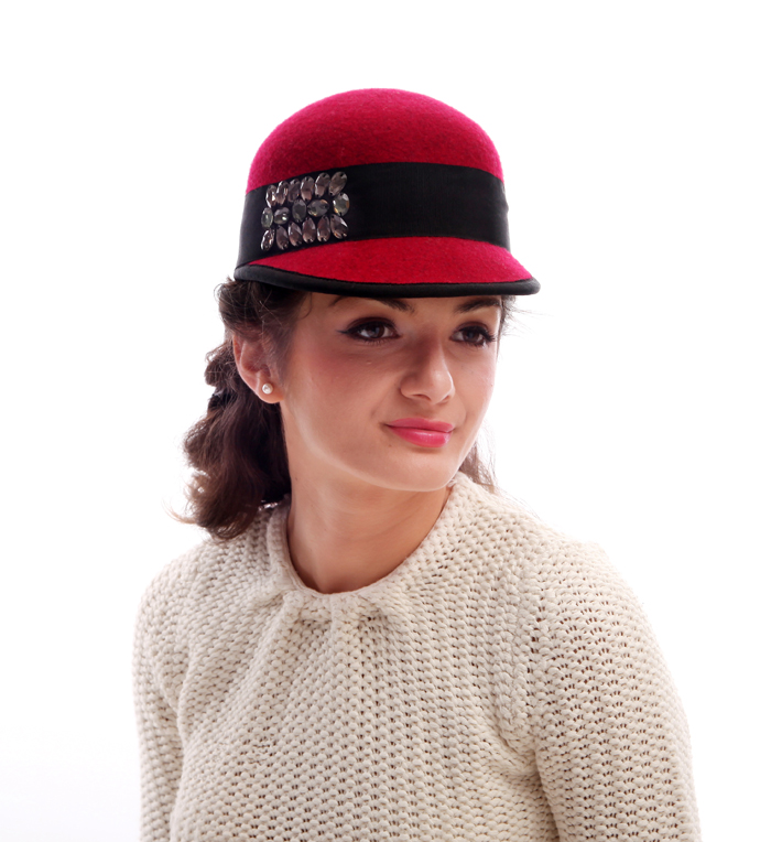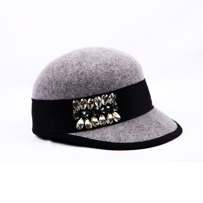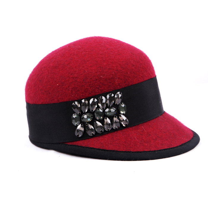 Simple style ladies short brim wool felt hat with fashion hot fix rhinestone (F/W)