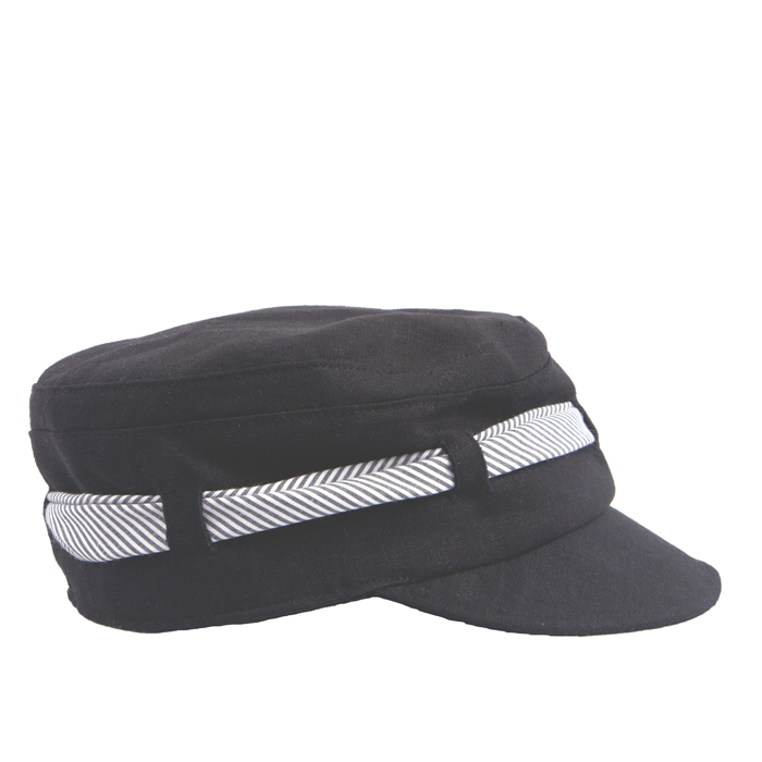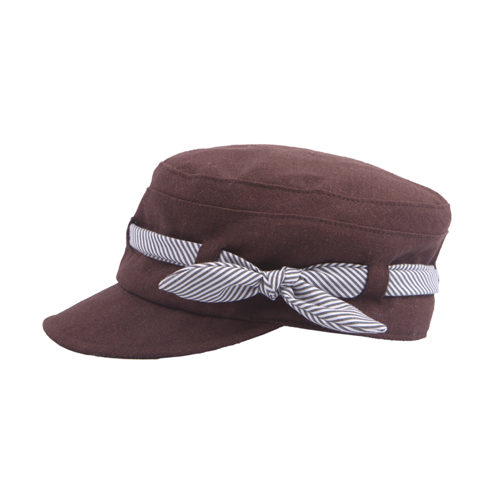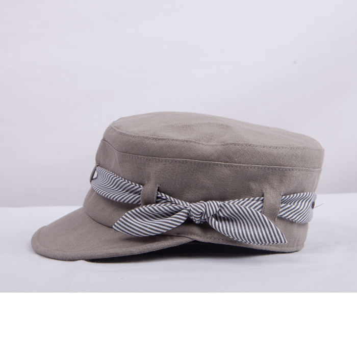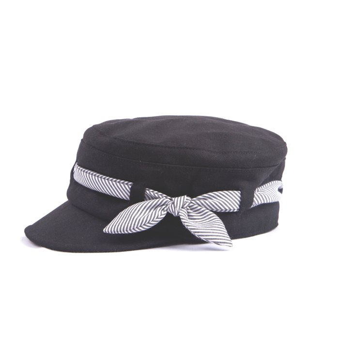 Women’s fashion flatcap decorated with navy stripe.(S/S)
