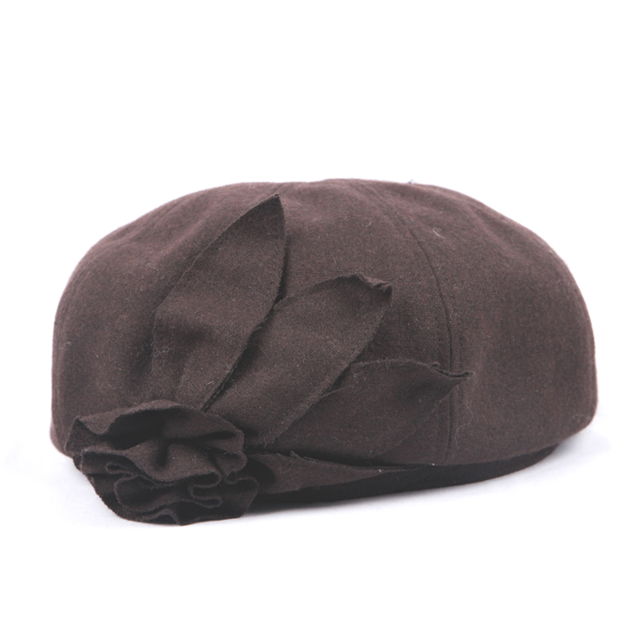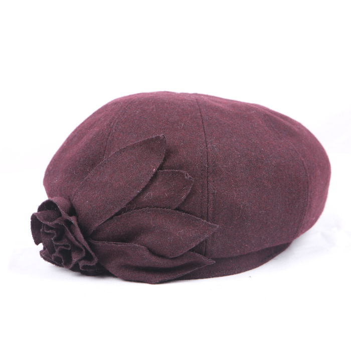 | 高档日系秋冬复古花饰贝雷帽 Upscale Japanese retro flower beret (F/W) 类别:女士贝雷帽 Item: Ladies’beret 货号:EBF0039 Model:EBF0039 成分:50% 羊毛 50%聚酯纤维 Content:50% Wool 50% Polyester 颜色:黑色、酒红、茶色 Color: Black、Burgundy、Brown 尺寸:57CM Size:57CM 适用季节:秋冬 Season: F/W 产地:中国福建 Region: Fujian China 适用人群:成年女性 Suitable crowds: Adult women