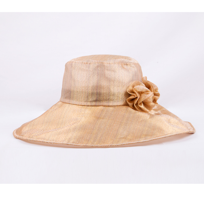 | 春夏女士雍容款大檐防晒遮阳帽 Ladies’glorious large brim hat with two luxury flowers(S/S) 类别:女士遮阳帽 Item: Women’s sunhat 货号:EBS0005 Model:EBS0005 成分:100% 聚酯纤维 Content:100% Polyester 颜色:金黄、紫色、宝蓝、橘黄 Color: Gold、Purple、Royal Blue、Orange 尺寸:57CM Size:57CM 适用季节:春夏 Season: S/S 产地:中国福建 Region: Fujian China 适用人群:成年女性 Suitable crowds: Adult women