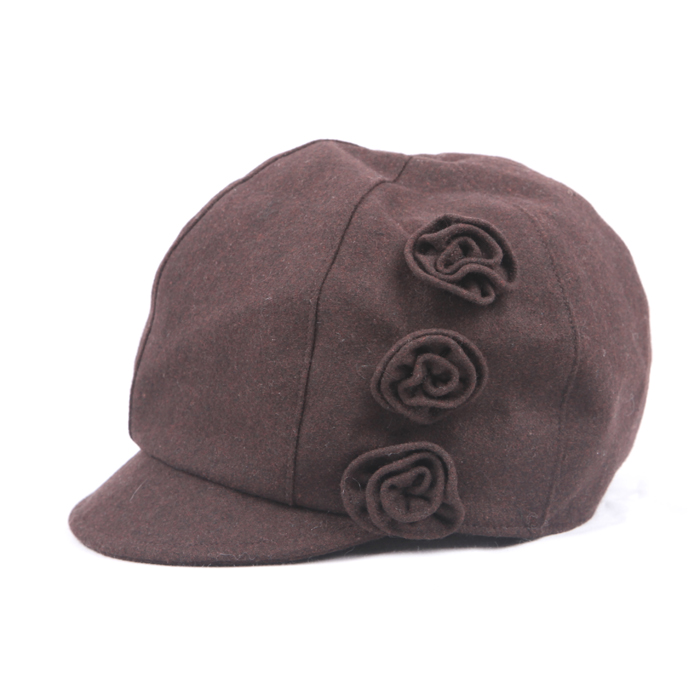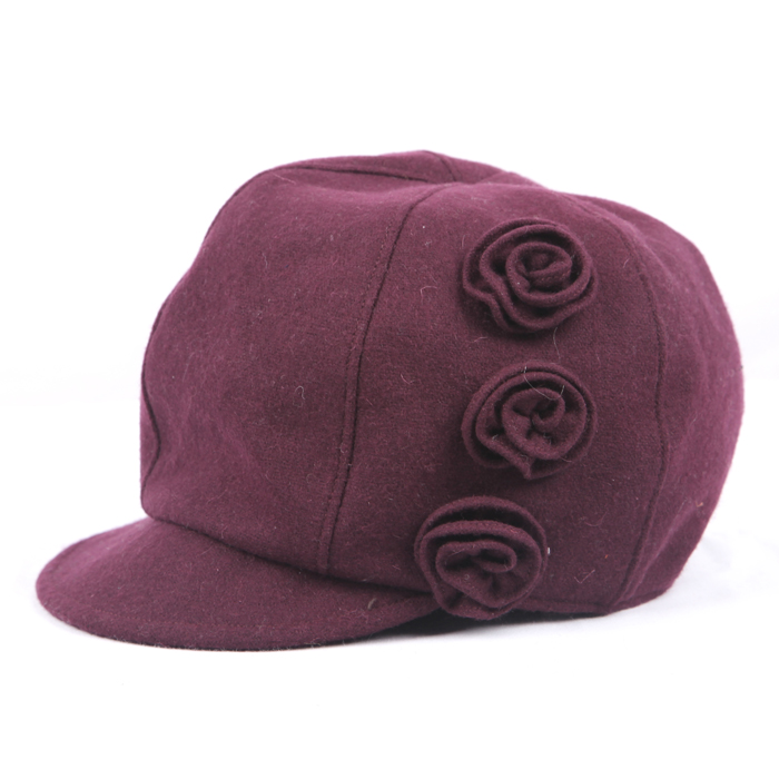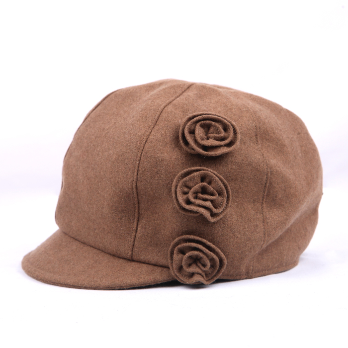| 秋冬女士可爱花朵装饰平顶帽 Ladies ’cute decorative flower flatcap (F/W) 类别:女士平顶帽 Item: Ladies’flat- top cap 货号:EBF0025 Model:EBF0025 成分:50% 羊毛50%聚酯纤维 Content: 50%Wool 50% Polyester 颜色:茶色、黑色、酒红、栗色 Color:Brown、Black、Burgundy、Maroon 尺寸:57CM Size:57CM 适用季节:秋冬 Season: F/W 产地:中国福建 Region: Fujian China 适用人群:成年女性 Suitable crowds: Adult women |